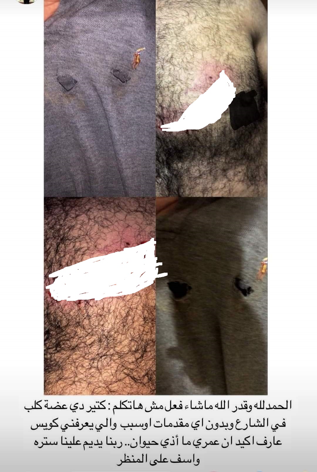 وتداول مستخدمي مواقع التواصل الاجتماعي فيسبوك بمحافظة بورسعيد صورة لشخص تعرض لإصابة بالغة في الصدر نتيجة تعرضه لعقر كلب، وعلق: أنا لا أهاجم الكلاب ولا أعرف السبب في عضي بهذا الشكل، والحمد لله قدر الله وما شاء فعل، وياريت نشوف حل للمشكلة، خاصة أنها تهدد حياتنا وحياة أبنائنا.