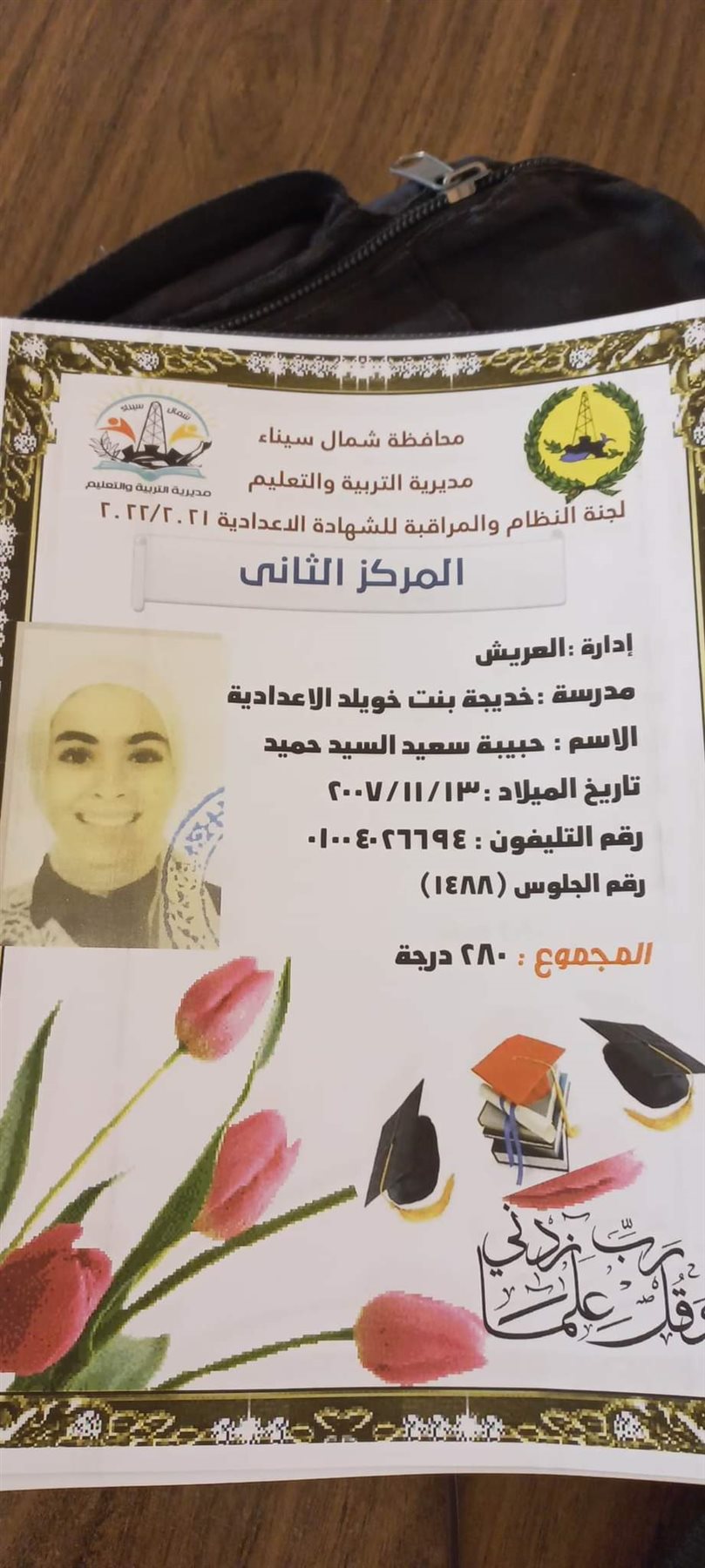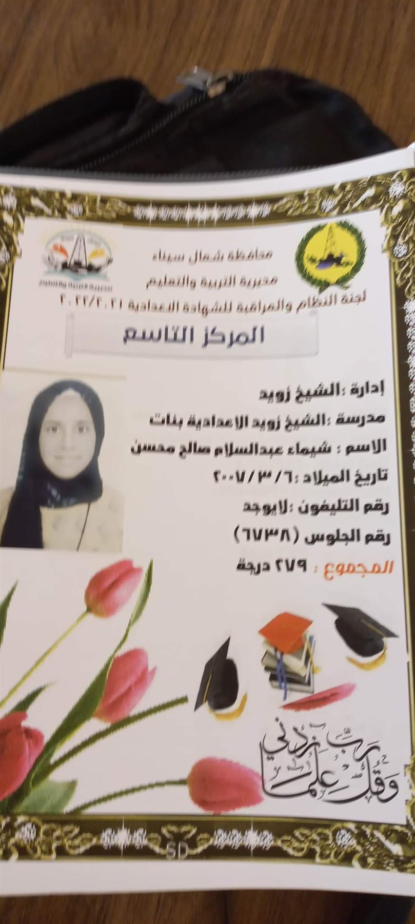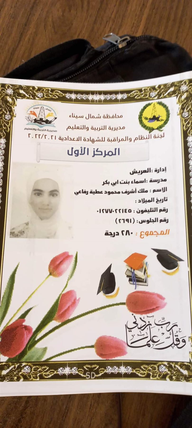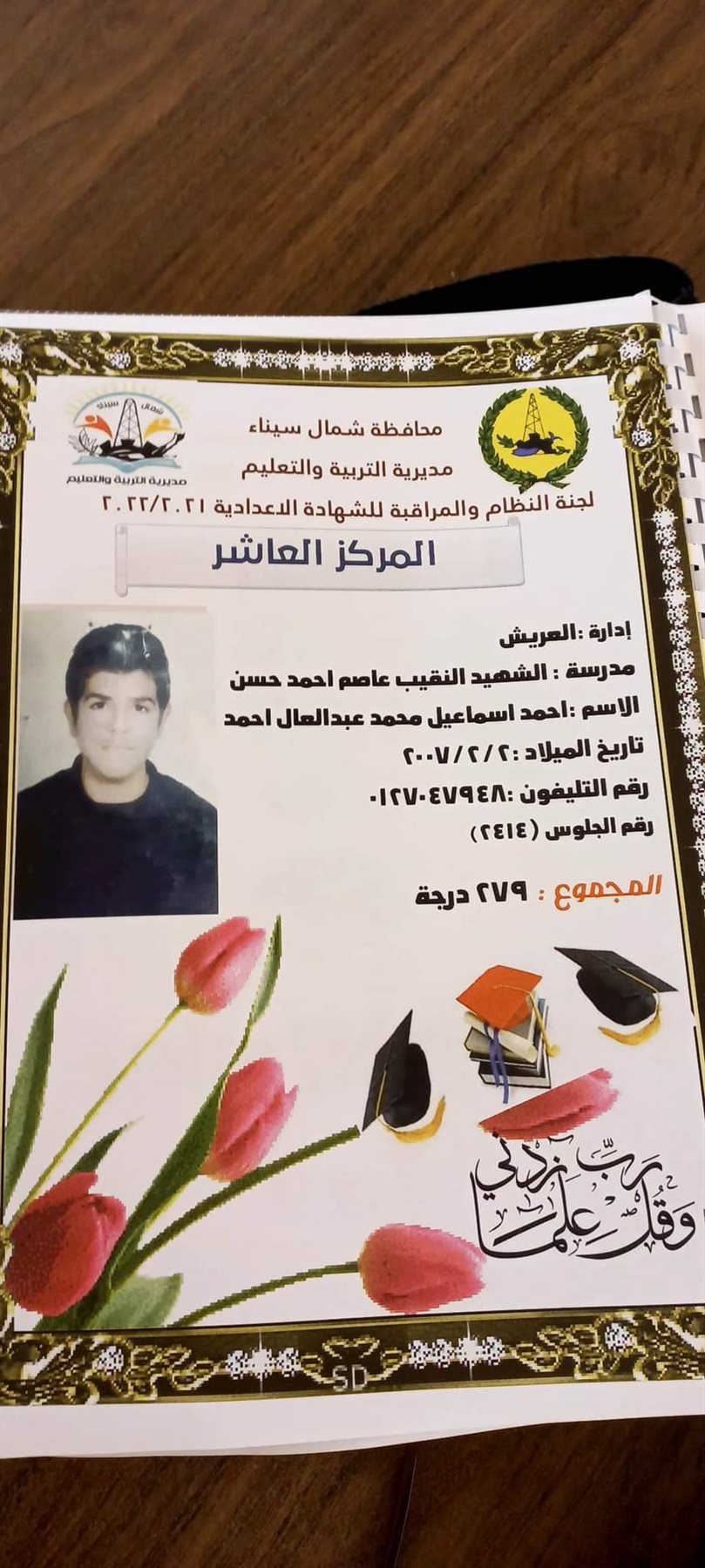 ننشر أسماء العشر الأوائل في الشهادة الإعدادية بشمال سيناء