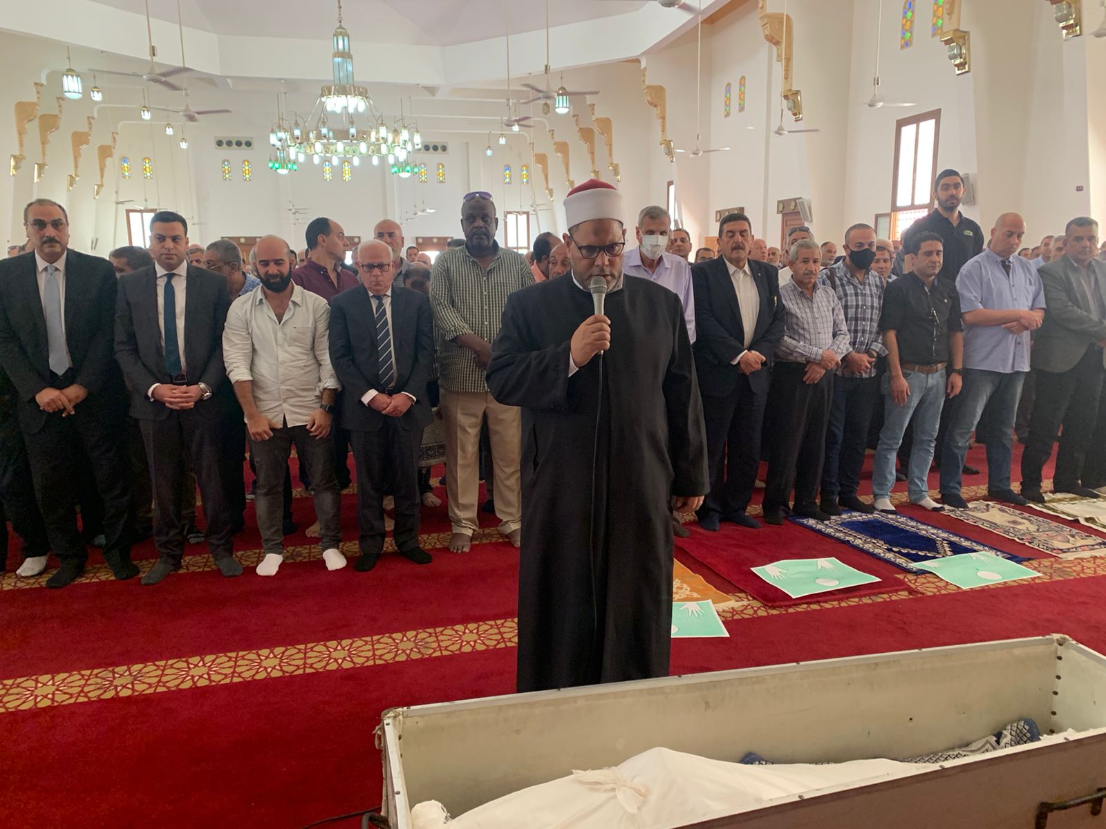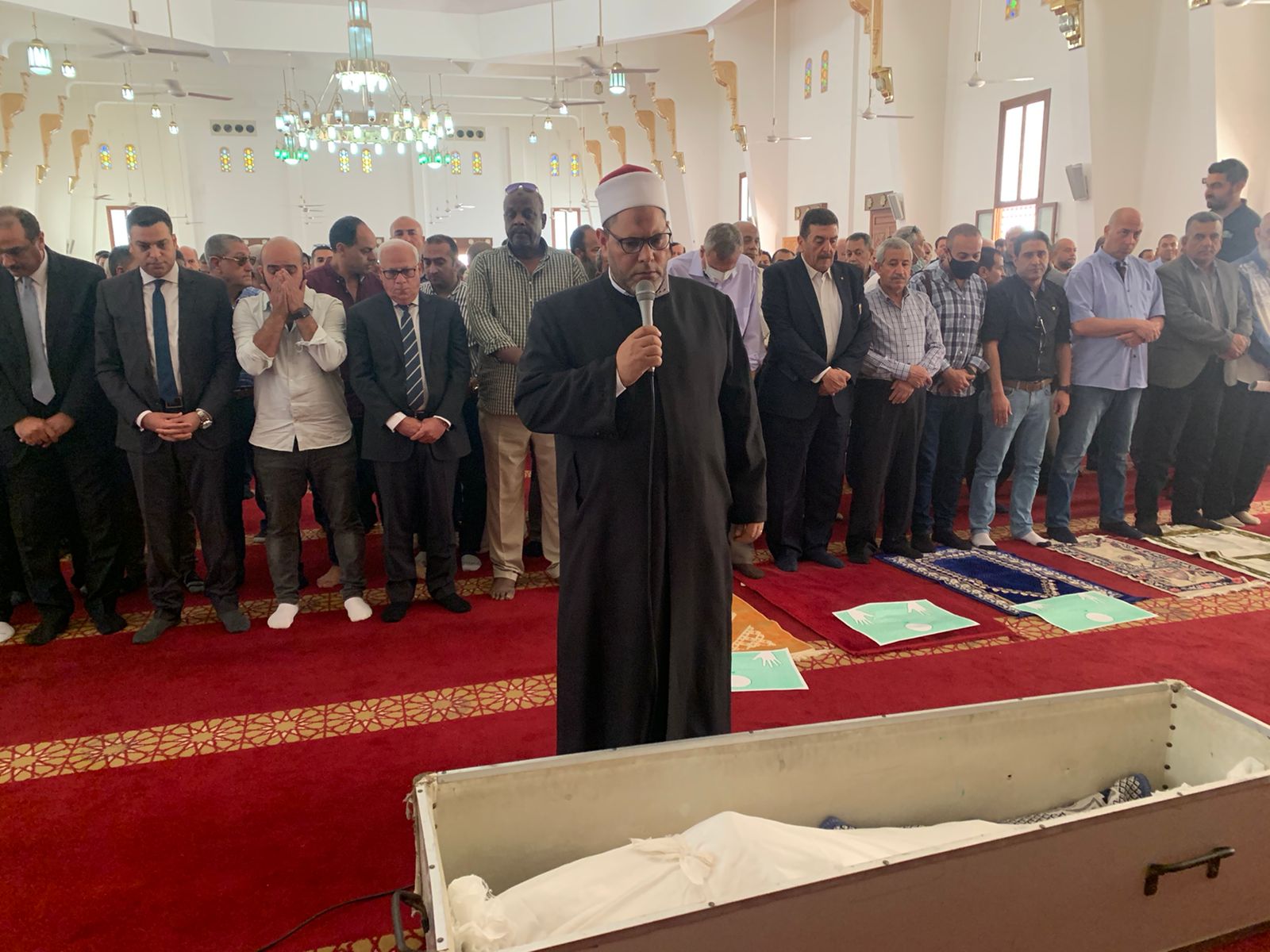 وأدى صلاة الجنازة الشيخ جمال عواد وكيل وزارة الأوقاف، وكان في بداية المُصلين اللواء عادل الغضبان محافظ بورسعيد، والمهندس حسن صقر رئيس المجلس، القومي للرياضة الأسبق، وحضر صلاة الجنازة؛ العديد من القيادات الأمنية والتنفيذية والسياسية.