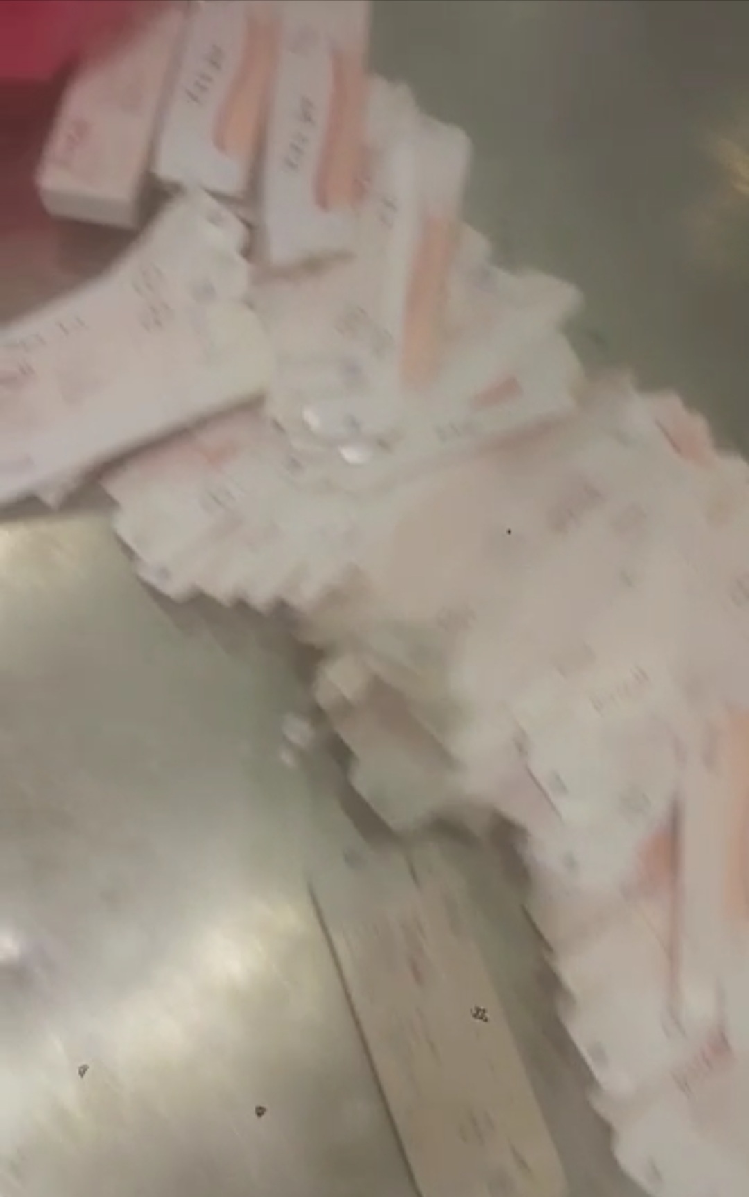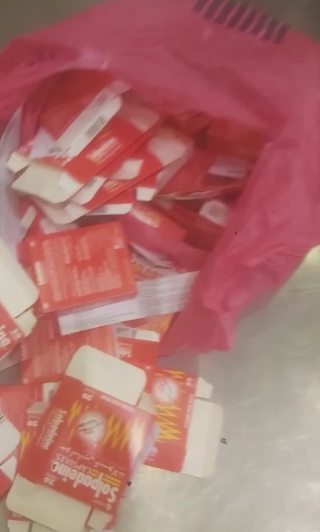 مما أسفر عن وجود 100 شريط من نفس دواء منع الحمل و120 شريطا من نفس الدواء المسكن مع الراكب الأول.