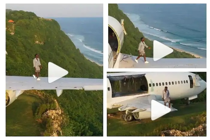ونشر رجل يدعى كومينج دارماوان؛ مقطع فيديو عبر إنستجرام، وهو يسير على أحد جناحي طائرة بوينج بدون قيود، في مدينة بالي بإندونيسيا، مع هبوط مستقيم بمئات الأقدام على كلا الجانبين.