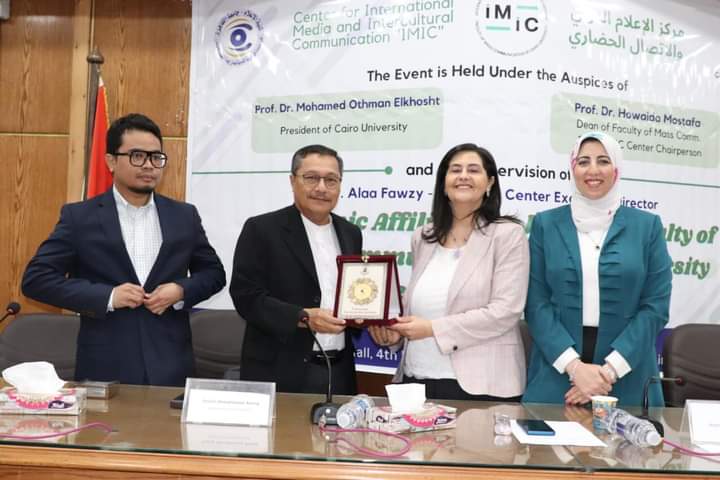 استضافت كلية الإعلام جامعة القاهرة وفدا رفيع المستوى من الجامعة الماليزية المفتوحة MOU، تحت رعاية الدكتور محمد عثمان الخشت، رئيس جامعة القاهرة، حيث نظم الزيارة مركز الاعلام والتواصل الحضاري بالكلية IMI باشراف الدكتورة آلاء فوزى المدير التنفيذى للمركز.