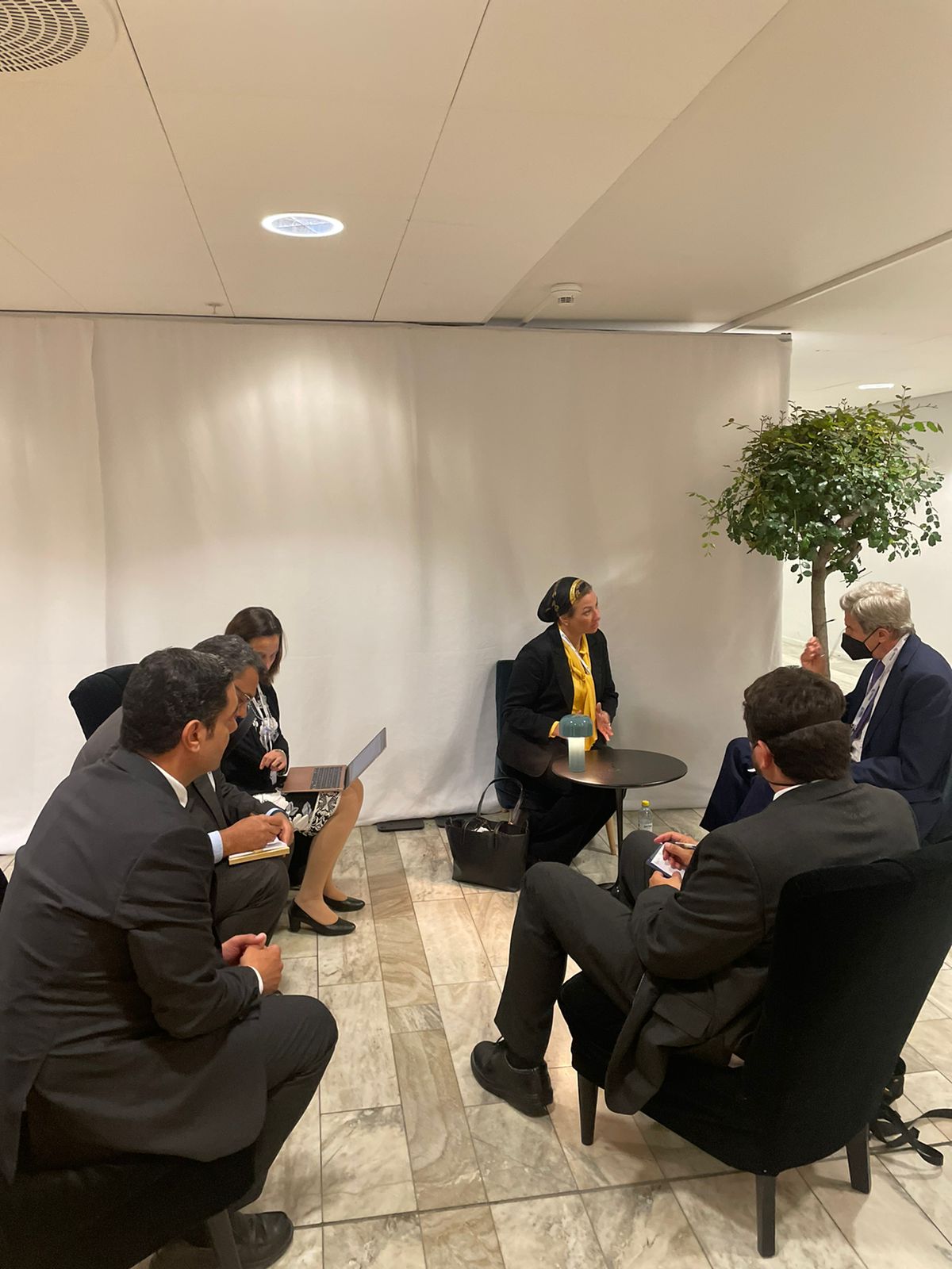 التقت الدكتورة ياسمين فؤاد وزيرة البيئة والمنسق الوزاري ومبعوث مؤتمر المناخ COP27، بجون كيري المبعوث الرئاسي الأمريكي الخاص بشئون المناخ؛ لبحث أوجه التعاون المختلفة في مجال مواجهة التغيرات المناخية، في ظل استعدادات مصر لاستضافة مؤتمر المناخcop27 بمدينة شرم الشيخ، وذلك على هامش مشاركتها بمؤتمر الأمم المتحدة ستوكهولم +50 المنعقد بدولة السويد.
