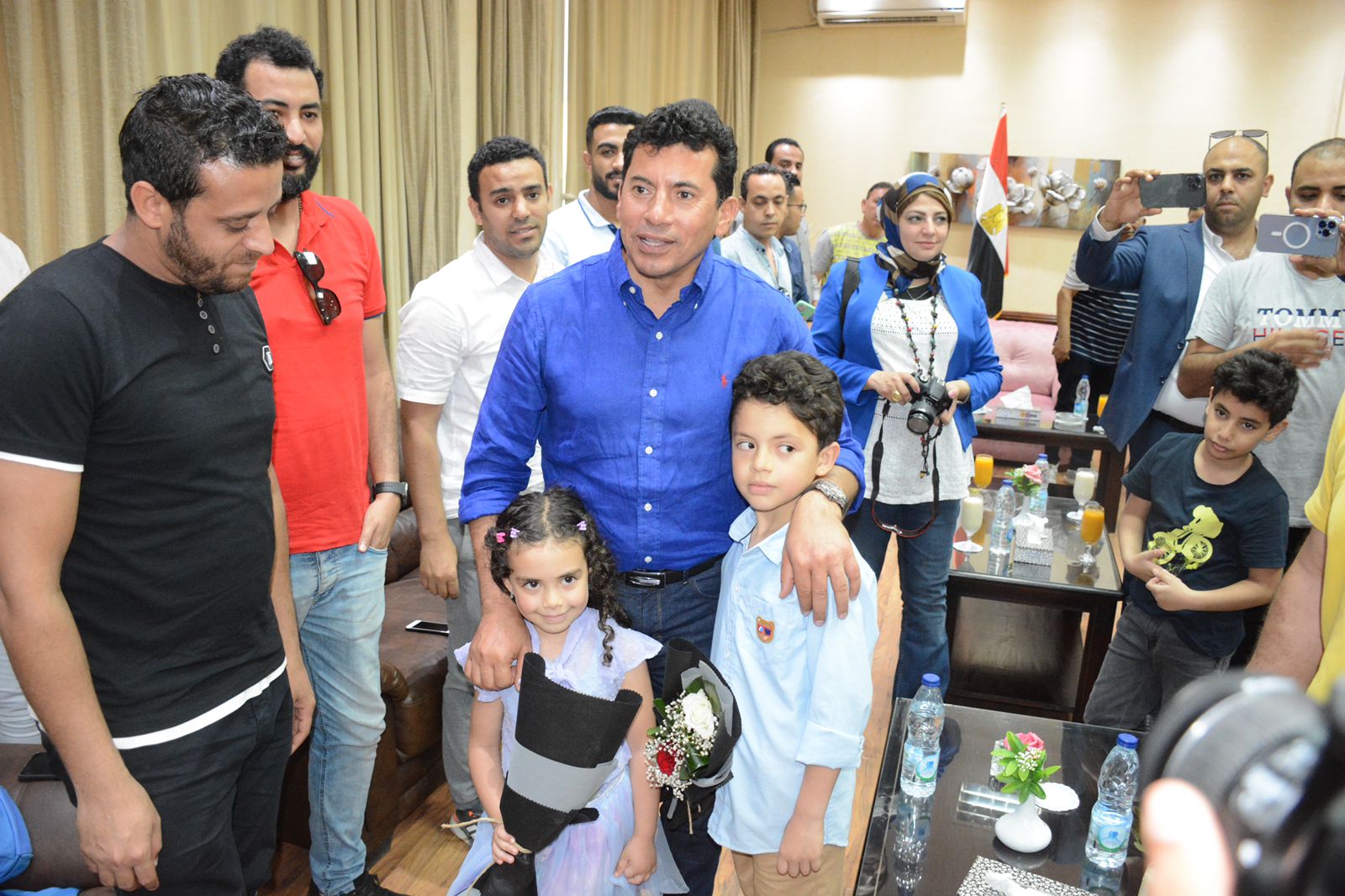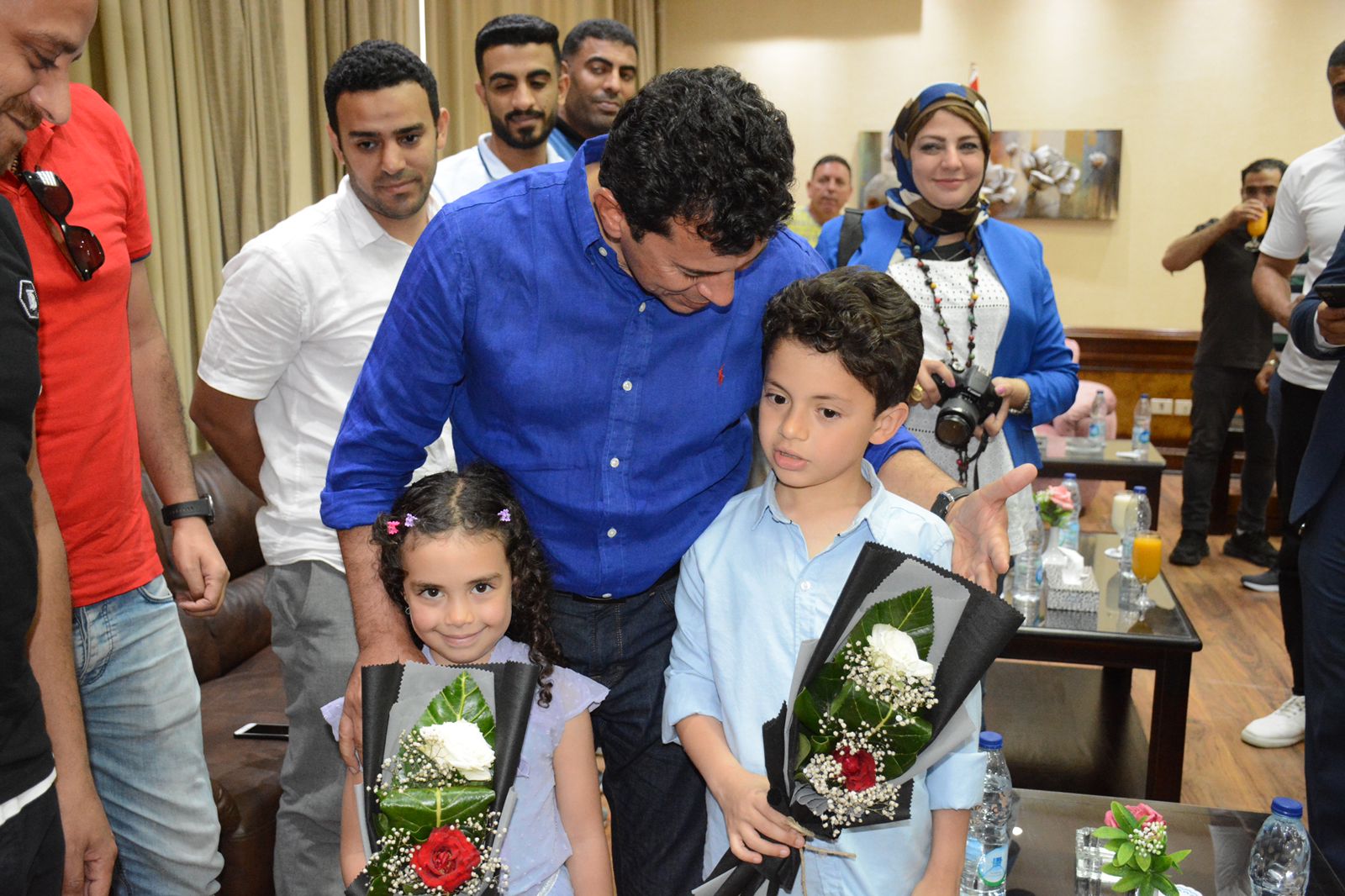 وزير الرياضة يستقبل أسرة الشهيد شبراوي بحفل افتتاح المشروع القومي للموهوبين