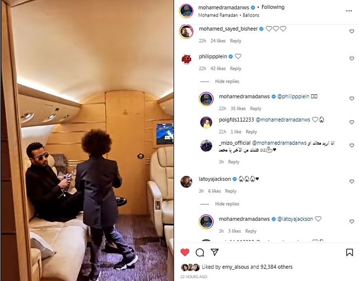 ونشر رمضان، مقطع الفيديو، عبر حسابه على انستجرام، حيث تفاعلت مع الفيديو المغنية العالمية لاتويا جاكسون شقيقة مايكل جاكسون، ومصمم الأزياء الألماني الشهير فيليب بلين.
