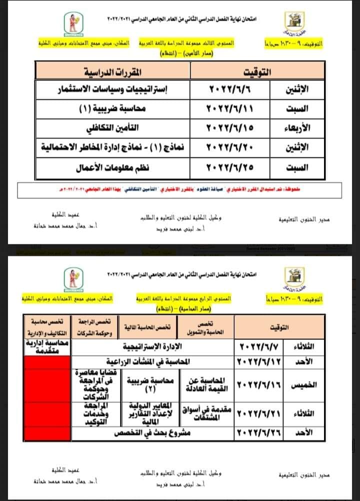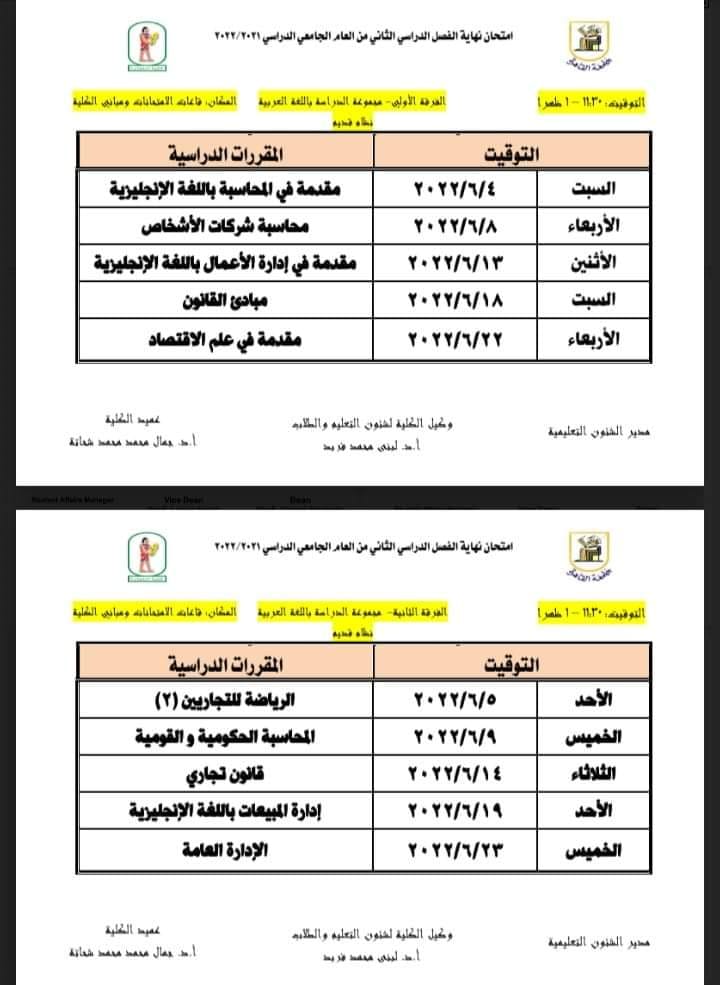 جدول امتحانات كلية تجارة جامعة القاهرة 2022 انتظام