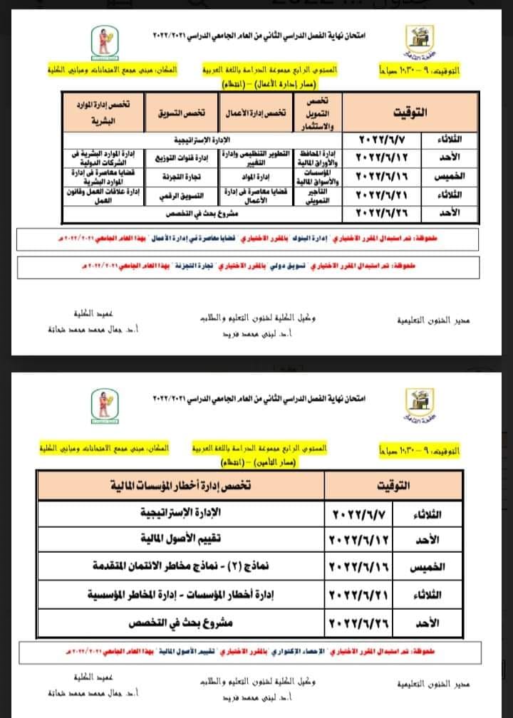 جدول امتحانات كلية تجارة جامعة القاهرة 2022