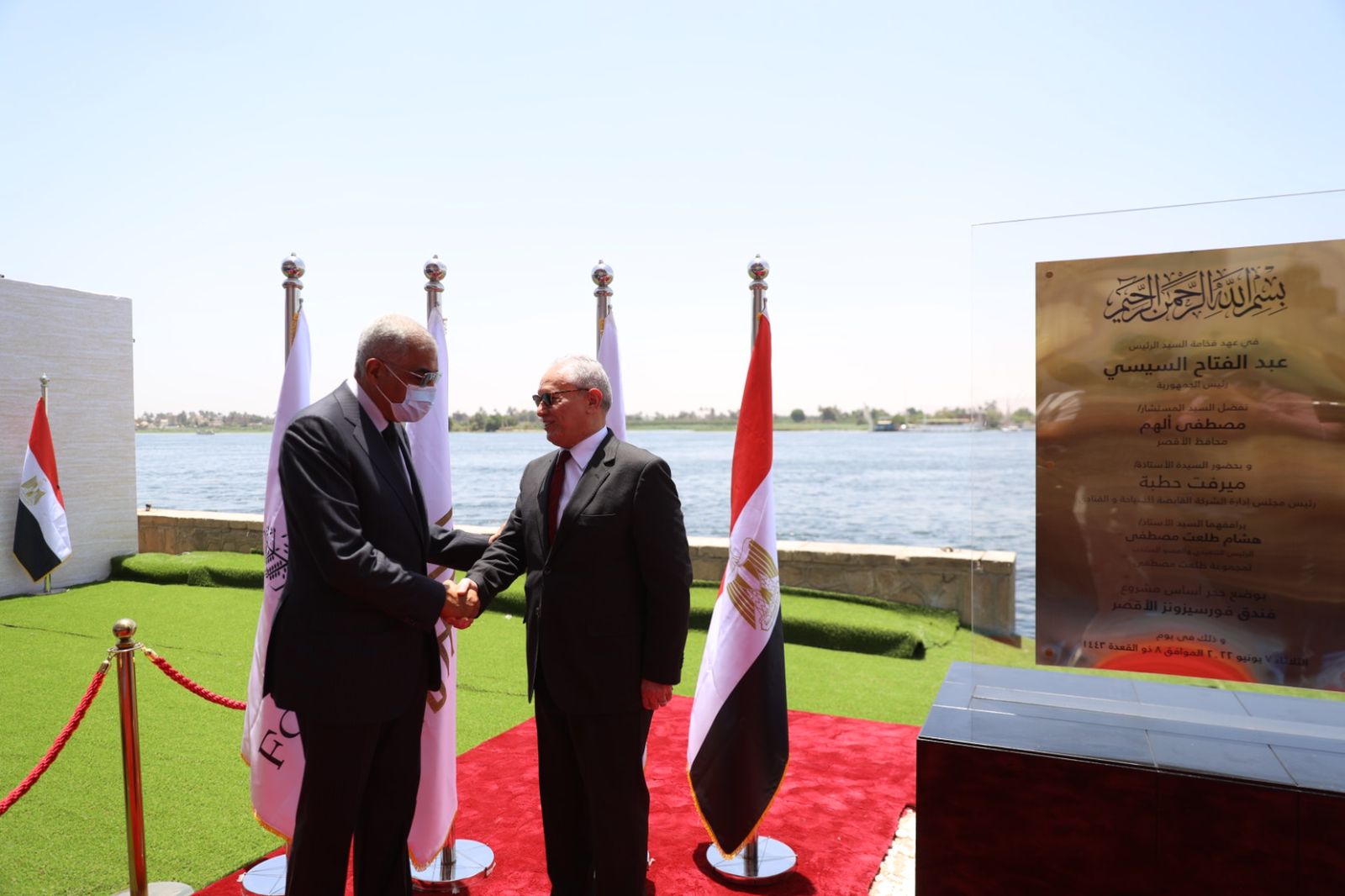 وضع المستشارمصطفى ألهم، محافظ الأقصر، وهشام طلعت مصطفى، الرئيس التنفيذي والعضو المنتدب لمجموعة طلعت مصطفى، حجر أساس مشروع فندق فورسيزونز الأقصر، بحضور ميرفت حطبة، رئيس مجلس إدارة الشركة القابضة للسياحة والفنادق، وذلك اليوم الثلاثاء 7 يونيو 2022.