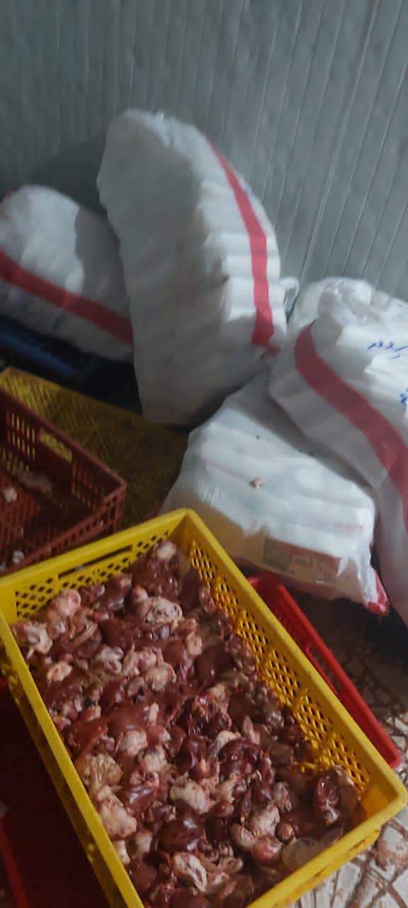 وأسفرت الحملات عن ضبط مخزن يحوي 2 طن هياكل دواجن فاسدة وغير صالحة للاستخدام الآدمي بشارع الثلاثيني الجديد بمنطقة المحولات، وتم التحفظ المضبوطات ومصادرتها، وغلق وتشميع المكان، وتحرير محضر لصاحب المخزن واتخاذ الإجراءات القانونية اللازمة.