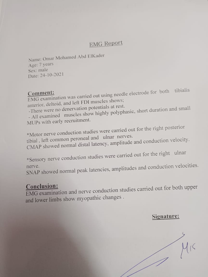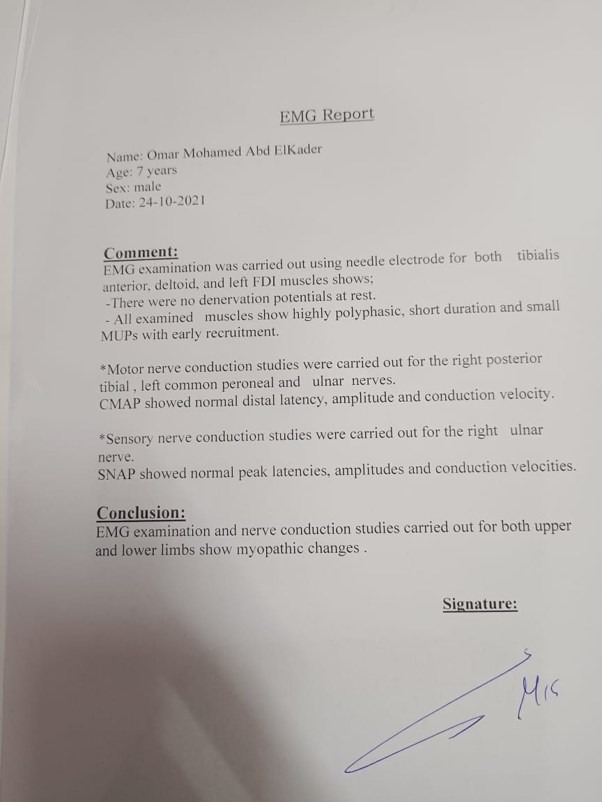 وتابعت آية: توجهنا إلى طبيب عظام، حتى حولنا إلى طبيب مخ وأعصاب، وبعد إجراء العديد من الفحوصات والتحاليل الطبية؛ تبين إصابته بالضمور العضلي الشوكي.