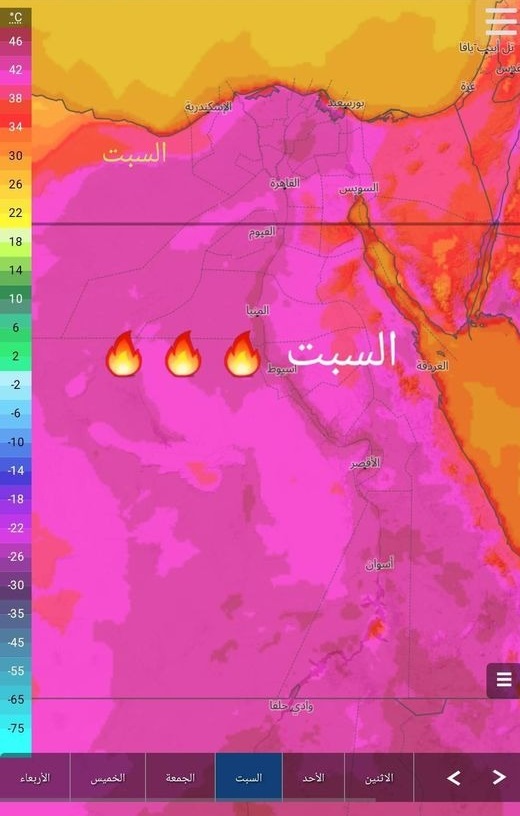 وفيما يلي يستعرض القاهرة 24 تفاصيل حالة الطقس ودرجات الحرارة يوم السبت المقبل، كذلك النصائح التي قدمتها الأرصاد الجوية للمواطنين لمواجهة ذروة الموجة الحارة التي ضربت البلاد.