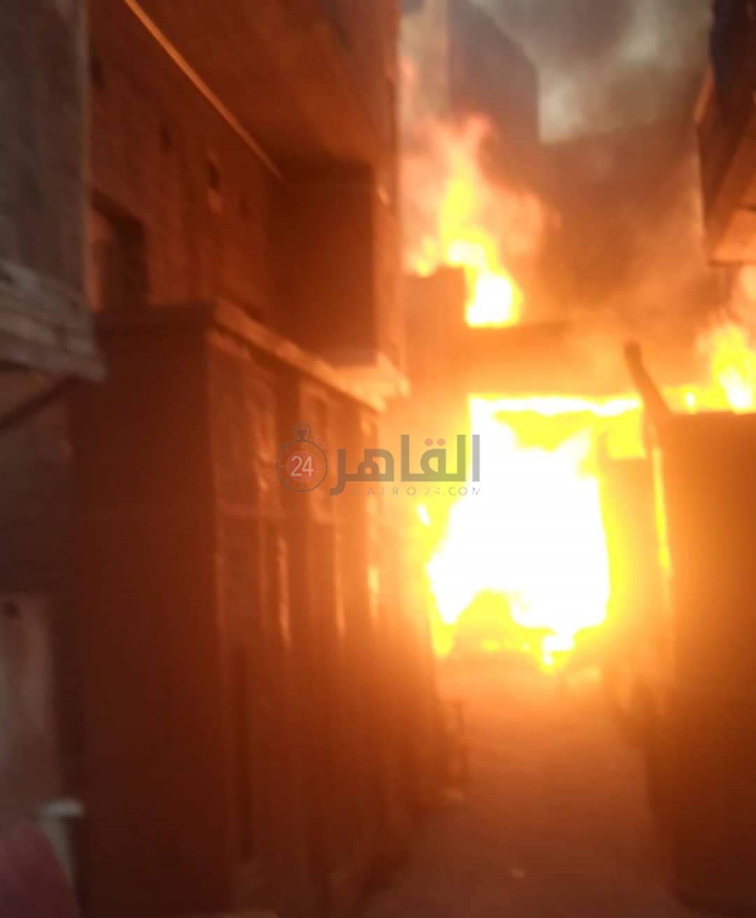 نشب حريق هائل، اليوم الأربعاء، في مخزن خردة بجوار الحمام القديم بمنطقة السوق الفوقاني بمدينة قنا.
