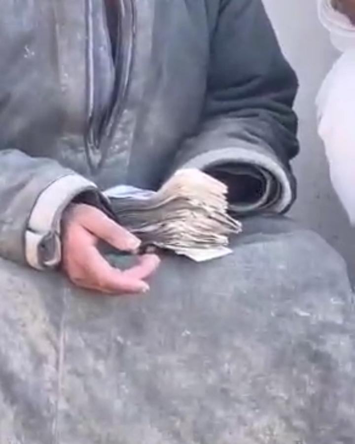 ويظهر الفيديو الذي نشره أحد رواد السوشيال ميديا، أحد الرجال يرتدي عباءة متسخة وشال على رأسه، ويحمل بيده الكثير من المال ويعده، ويتشاجران معًا حول ما جمعه في يومه وأنه لم يجن مبلغا جيدا اليوم، بينما يرد الآخر أنه معه الكثير.