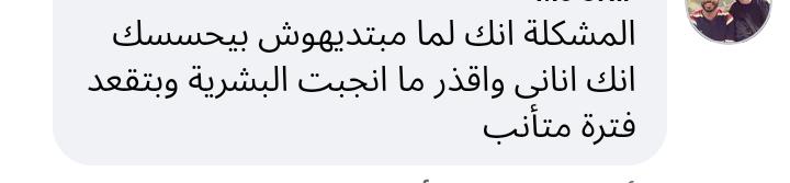 بينما علق آخر: المشكلة انك لما مبتديهوش بيحسسك إنك أناني وأقذر ما أنجبت البشرية، وبتقعد فترة متأنب.
