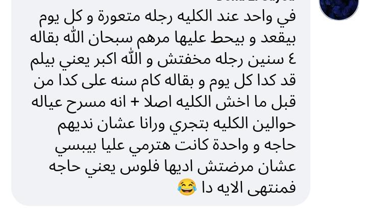 وروى أحدهم في تعليقه على الفيديو: في واحد عند الكلية رجله متعورة وكل يوم بيقعد وبيحط عليها مرهم سبحان الله بقاله 4 سنين رجله مخفتش والله أكبر بيلم قد كدا كل يوم وبقاله كام سنة على كدا من قبل ما اخش الكلية أصلا+ إنه مسرح عياله حوالين الكلية بتجري ورانا عشان نديهم حاجة، وواحدة كانت هترمي عليا بيبسي عشان مرضيتش أديها فلوس.