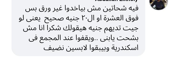 وعلق أحد رواد السوشيال ميديا عبر فيسبوك: فيه شحاتين مش بياخدوا غير ورق بس فوق العشرة أو الـ20 جنيه صحيح..يعني لو جيت تديهم جنيه هيقولك شكرا انا مش بشحت يابني وبيبقوا لابسين نضيف.