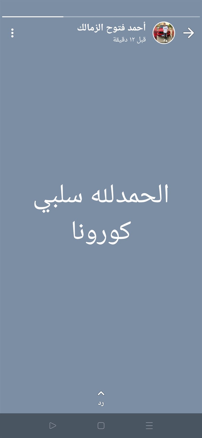 وكتب اللاعب عبر الاستوري الخاص به على الواتس آب قائلا: الحمد لله سلبي كورونا.