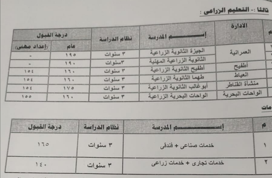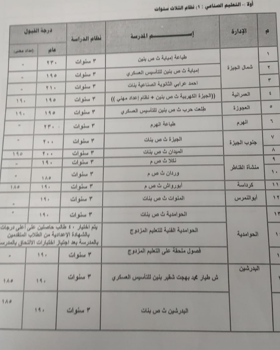 كما أعلنت المديرية جميع درجات القبول بالمدارس الثانوية بتعليم الجيزة بمختلف أنواعها الصناعية والتجارية للعام الدراسي المقبل.