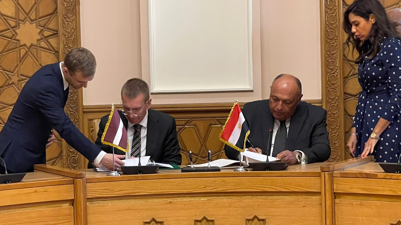 سامح شكري يوقع مع وزير خارجية لاتفيا اتفاق تعاون في مجال التعليم والعلوم