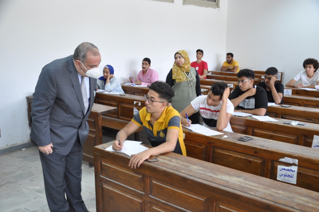 رئيس جامعة حلوان يتابع سير امتحانات كلية الآداب ويتفقد مبنى الاختبارات الإلكترونية| صور