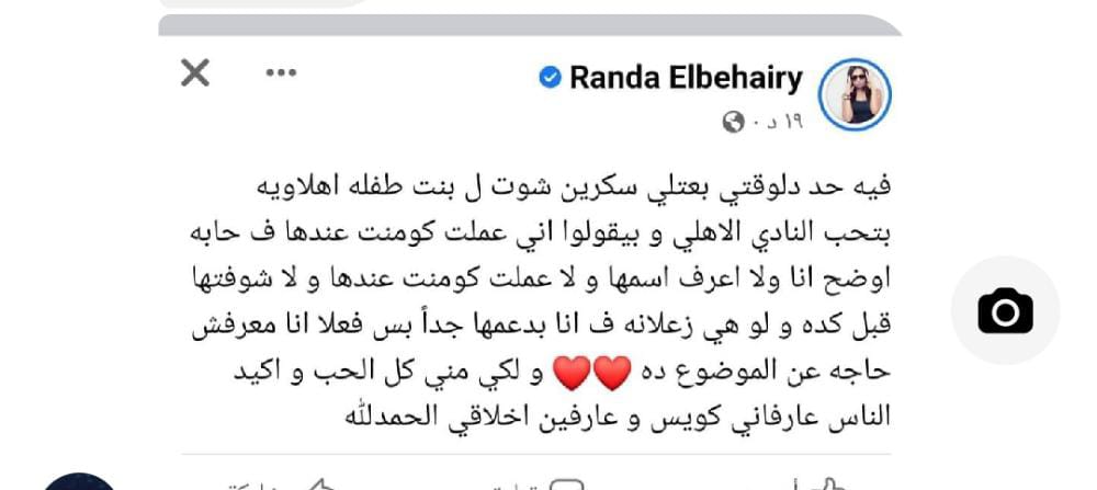تعليق مسئ من الفنانة راندا لطفلة عبر فيسبوك