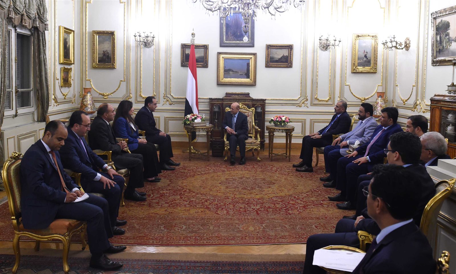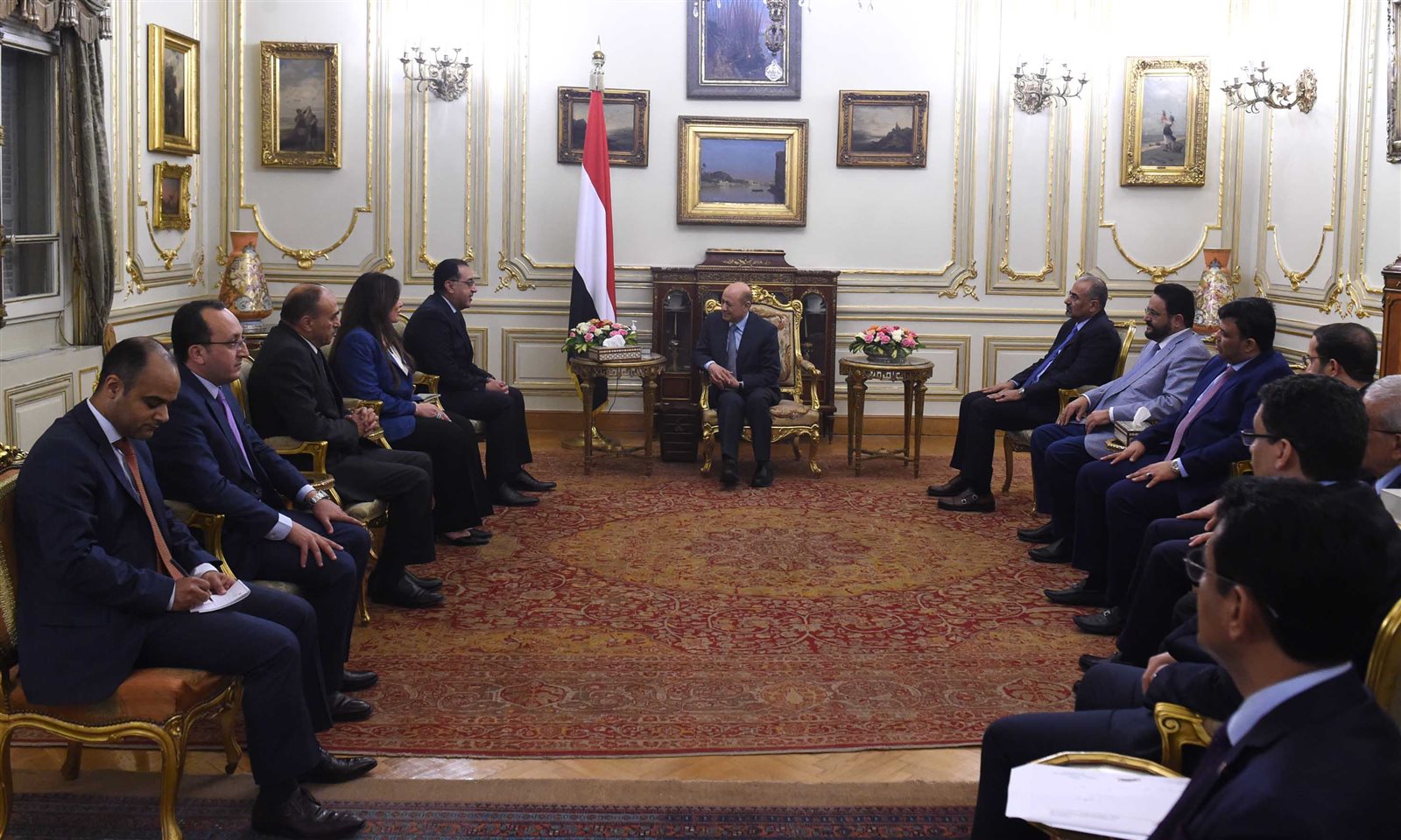 استقبل الدكتور رشاد العليمي، رئيس مجلس القيادة الرئاسي اليمني، مساء اليوم، بمقر إقامته بالقاهرة، الدكتور مصطفى مدبولي، رئيس مجلس الوزراء، بحضور أعضاء مجلس القيادة الرئاسي المرافقين للرئيس، ووزير خارجية اليمن، وسفير اليمن في القاهرة.