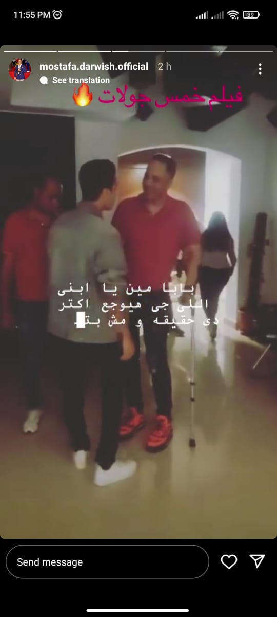 رغم إصابته.. مصطفى درويش يحضر تصوير فيلمه خمس جولات على عكاز | صورة