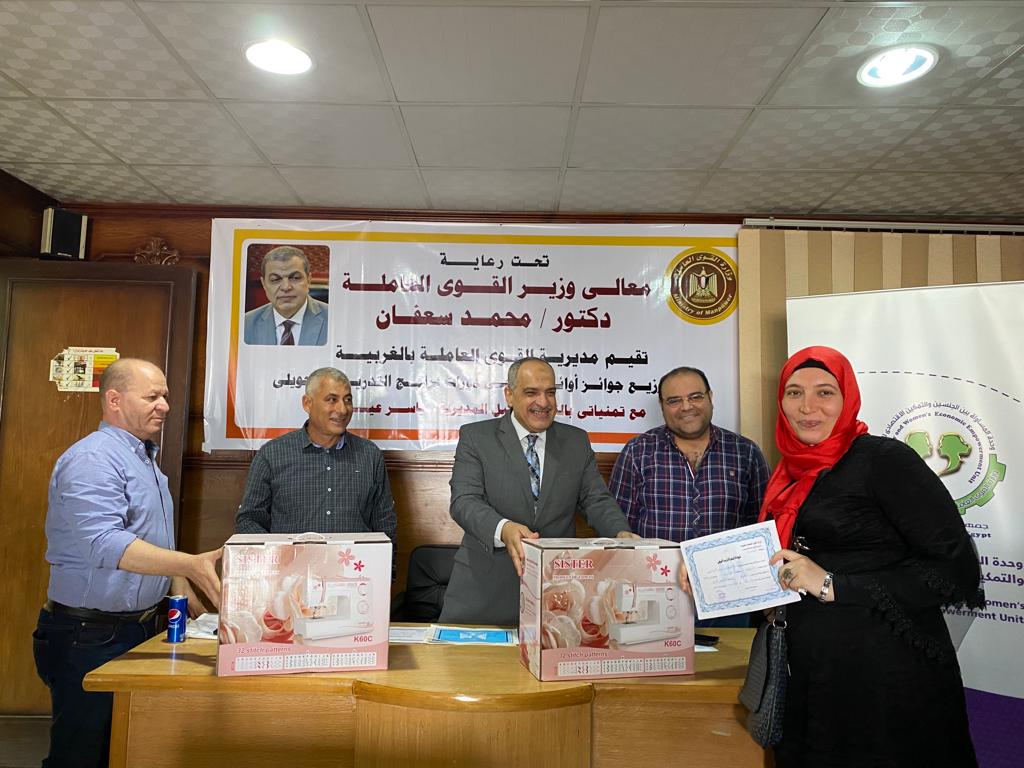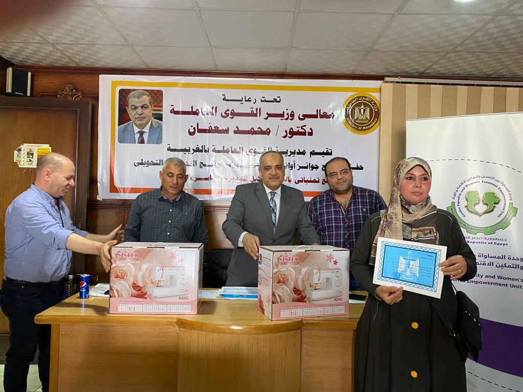 وفي هذا الإطار نظمت مديرية القوى العاملة بالغربية، حفل توزيع الجوائز لخريجي التدريب المهني التحويلي بالمديرية على مهنة التفصيل والحياكة، وعقد ورشتي عمل عن المساواة بين الجنسين، وريادة الأعمال، وكيفية بدء مشروع صغير بالتعاون مع وحدة المساواة بين الجنسين بالمديرية، وجهاز تنمية المشروعات الصغيرة والمتوسطة بالمحافظة.