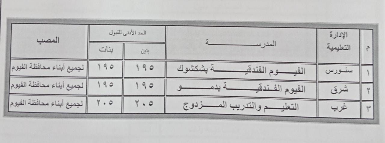 تحديد الحد الأدنى للقبول بمدارس التعليم الثانوي العام بالفيوم