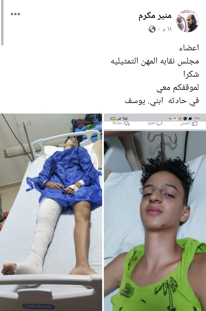 وأضاف منير مكرم: شكرًا لكل أعضاء مجلس نقابة المهن التمثيلية، لوقوفكم معي في حادث ابني.