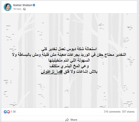 وكتب شعبان عبر صفحته الرسمية على موقع التواصل الاجتماعي فيسبوك: استحالة شكة دبوس تعمل تخدير كلي، لأن التخدير محتاج حقن في الوريد بجرعات معينة مش قليلة، ومش بالبساطة ولا السهولة اللي أنتم متخيلينها.