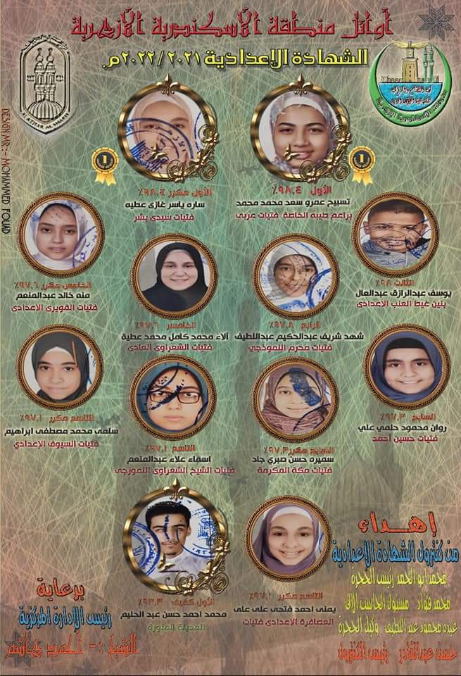 وجاءت أسماء أوائل الشهادة الإعدادية على النحو التالي: