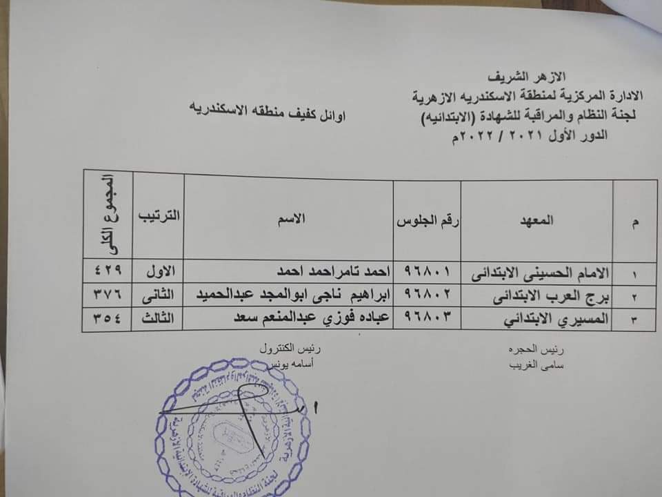 بالأسماء.. تعرف على أوائل الشهادتين الابتدائية والإعدادية لطلاب الأزهر بالإسكندرية