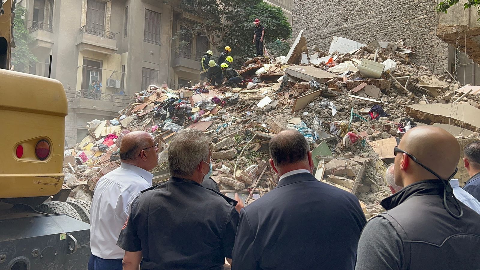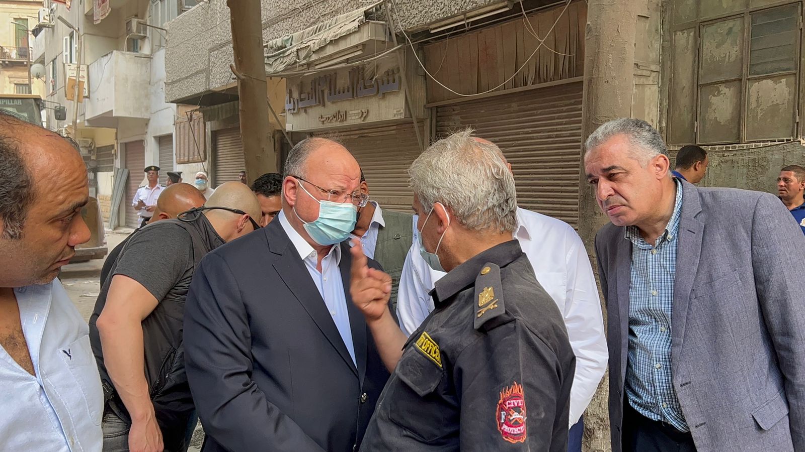 انهيار منزل بالوايلي.. محافظ القاهرة وكبار المسؤولين يتابعون عمليات رفع الأنقاض | صور