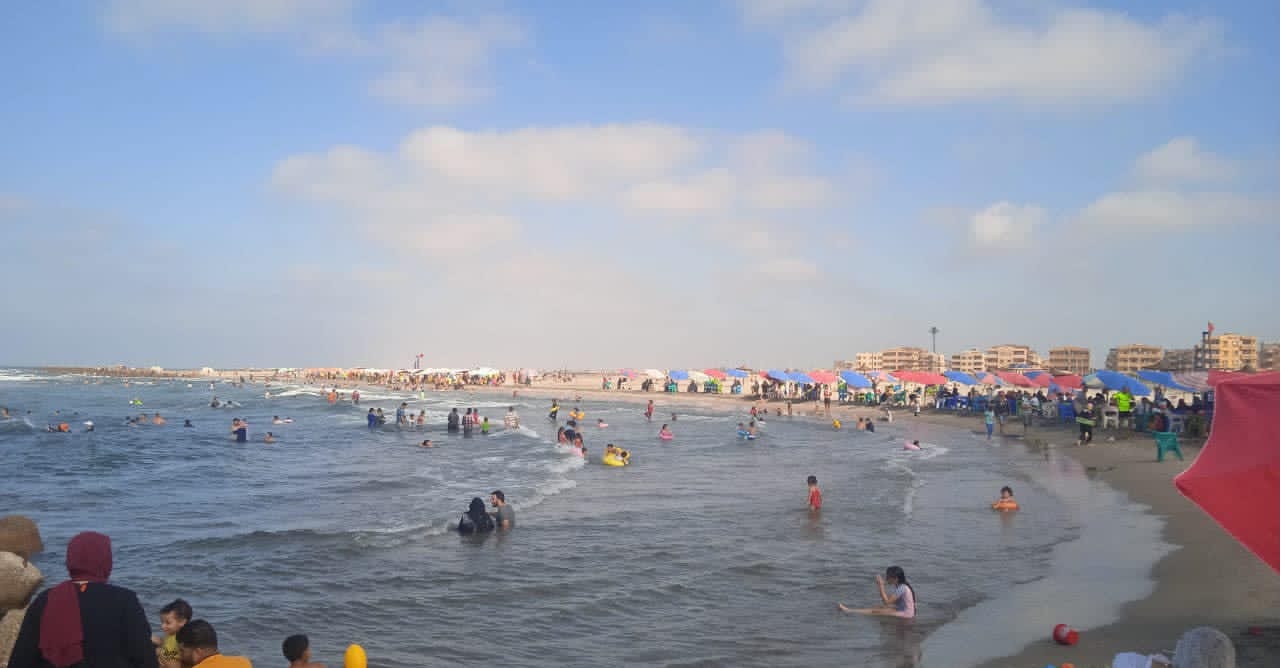توافد المصطافين على مصيف بلطيم بكفر الشيخ وسط تواجد رجال الإنقاذ