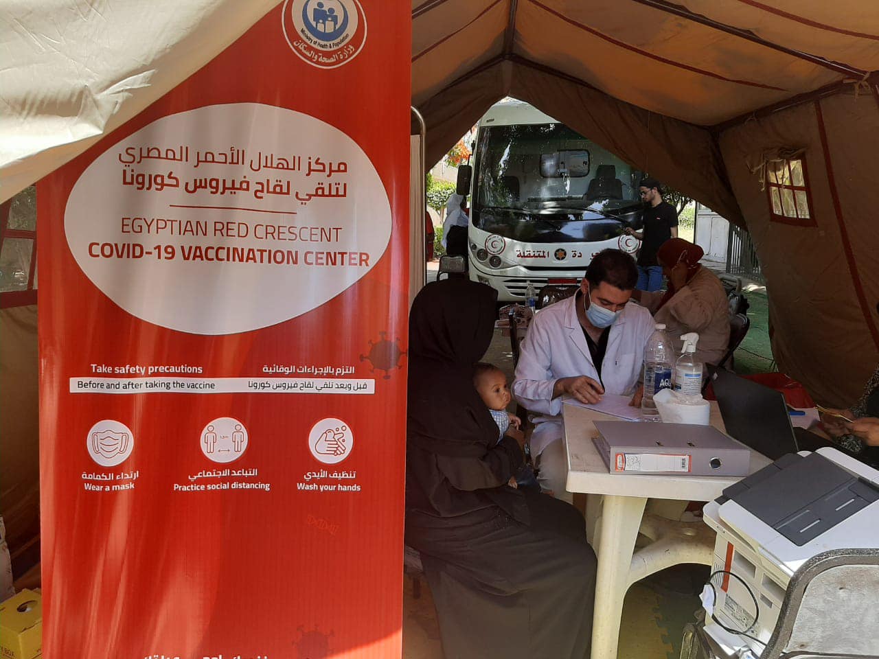 وقالت جمعية الهلال الأحمر المصري، في بيان رسمي لها، إنها قدمت خدمة الرعاية الصحية الأولية لنحو 19200 مستفيد من المهاجرين والمصريين، موضحة أن القافلة الطبية الخاصة بالعيادات المتنقلة، تضمنت فرق للتوعية الصحية والدعم النفسي الاجتماعي، علاوة على تقديم العديد من الخدمات الأخرى تحت مظلة المشروع، مثل خدمة تطعيم لقاح كورونا ومساعدات الإيجار والقسائم الغذائية، وندوات التوعية الصحية والإسعافات الأولية والدعم النفسي الاجتماعي.