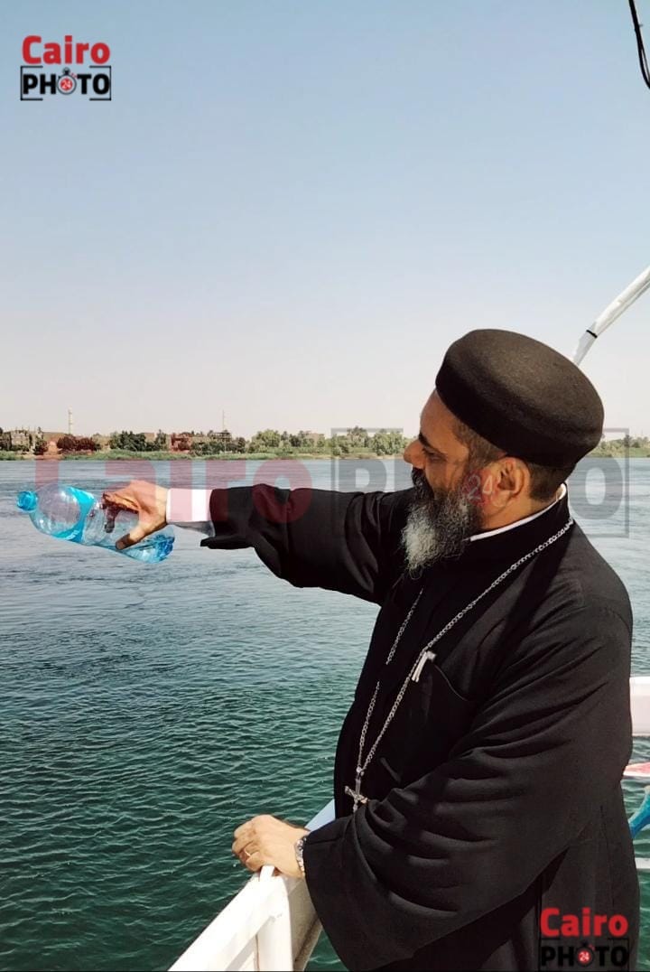 وأردف: نلقي مياه الأواني المقدسة في نهر النيل، لكي يبارك الرب إلهنا نهر النيل في هذا العام، ويصعد مياهه كمقدارها ويفرح وجه الأرض، وتأتي بثمار للدولة المصرية.
