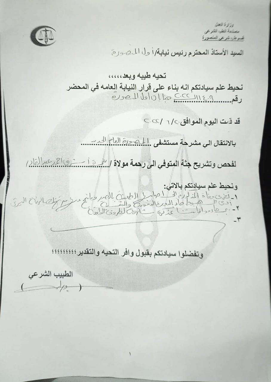 حصل موقع القاهرة 24، على نسخة ضوئية من تقرير الطب الشرعي، للطالبة نيرة أشرف أحمد عبدالقادر، ضحية جامعة المنصورة، والتي لقيت مصرعها اليوم الاثنين أمام بوابة الجامعة.