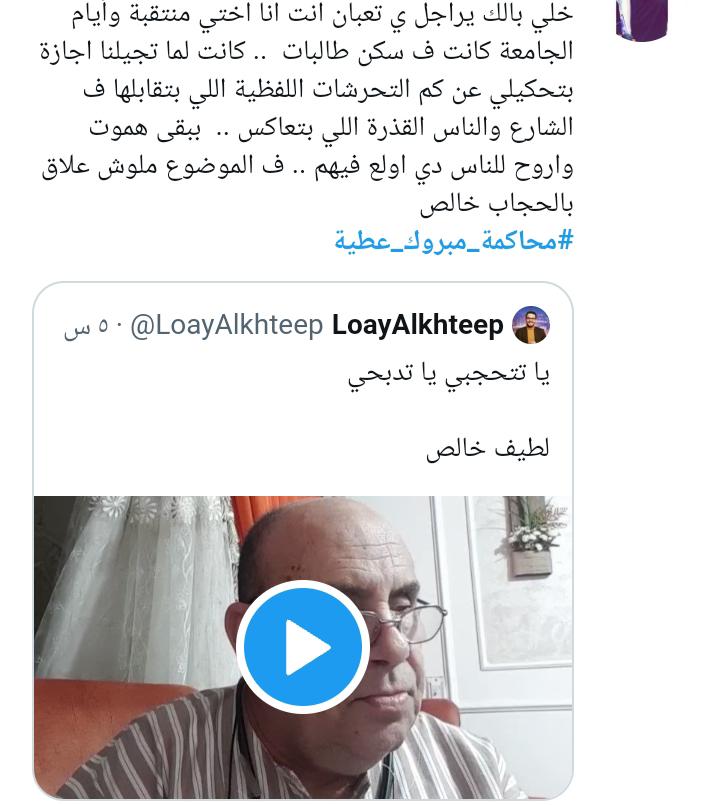 وقال آخر: بلدنا طول عمرها الناس عايشة مع بعض كل واحد في حاله.. امنعوا المجاذيب من إن يكون ليهم صوت !!الناس اللي بتتكلم زي مبروك عطية دول أخطر على بلدنا من أي عدو خارجي.