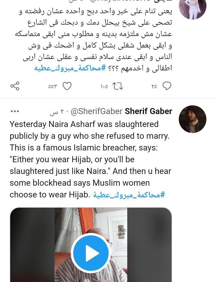 تصدر هشتاج محاكمة_مبروك عطية؛ تريند تويتر، وذلك بعد تصريحاته الخاصة بواقعة مقتل نيرة فتاة المنصورة على يد زميلها أمام الجامعة، مما أثار غضب المتابعين ورواد مواقع التواصل الاجتماعي.