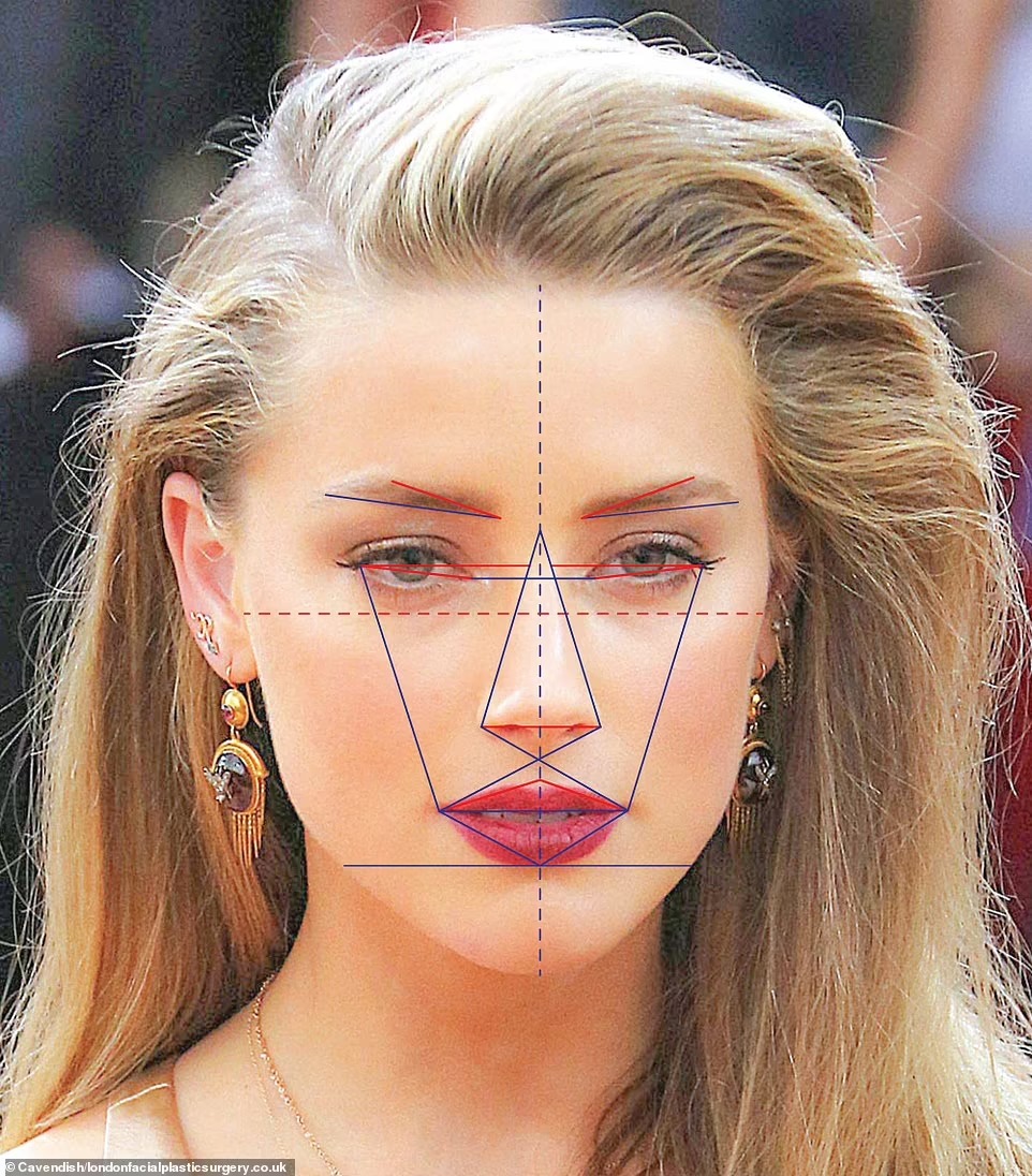 وتمتلك امبر هيرد، البالغة من العمر 36 عامًا، وجهًا بدقة 91.85% من النسبة الذهبية اليونانية للجمال Phi، والتي كان يُعتقد لآلاف السنين أنها تحمل الصيغة السرية للكمال، والتي تم اختبارها مرة أخرى في عام 2016 باستخدام أحدث تقنيات رسم خرائط الوجه من قبل جراح هارلي ستريت في لندن الدكتور جوليان دي سيلفا.