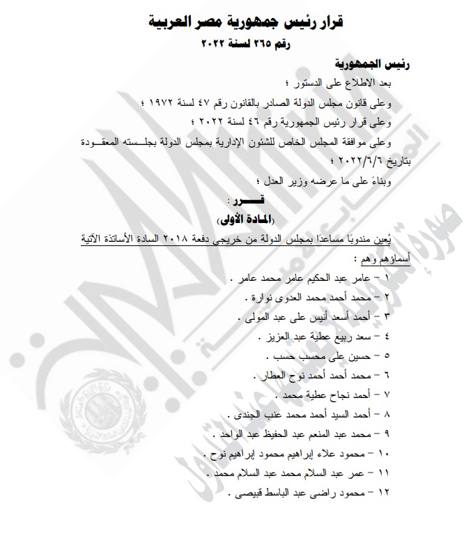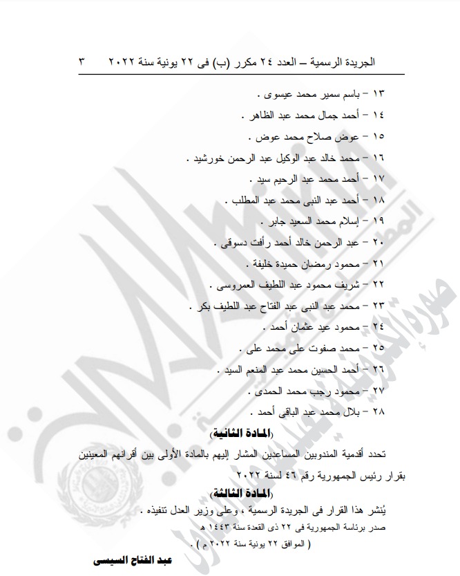 الجريدة الرسمية تنشر قرار الرئيس السيسي بتعيين 28 مساعدا في مجلس الدولة | أسماء