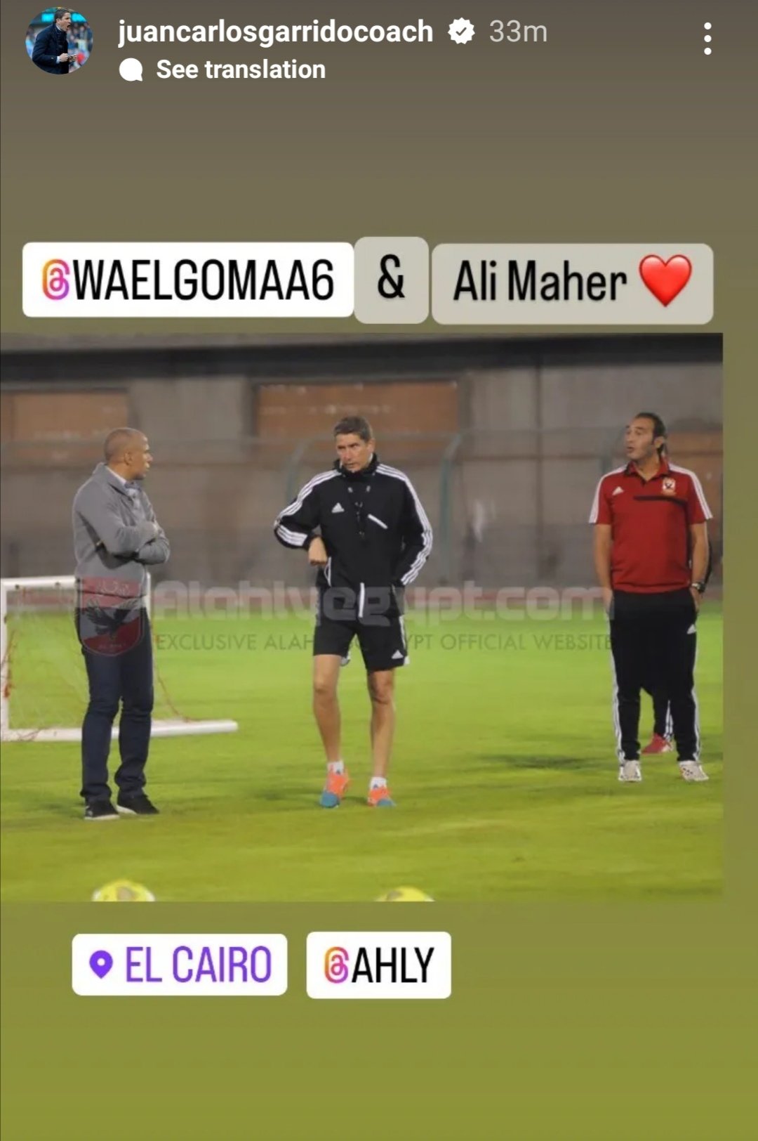 ونشر خوان كارلوس جاريدو، صورة عبر حسابه على موقع انستجرام برفقة وائل جمعة وعلي ماهر، أثناء فترة تواجدهم في الجهاز الفني للفريق الأحمر.