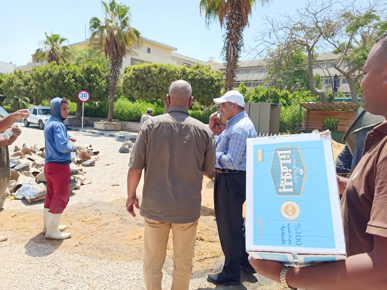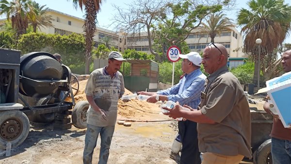 رئيس جامعة الأزهر يوزع الماء والعصير على العمال