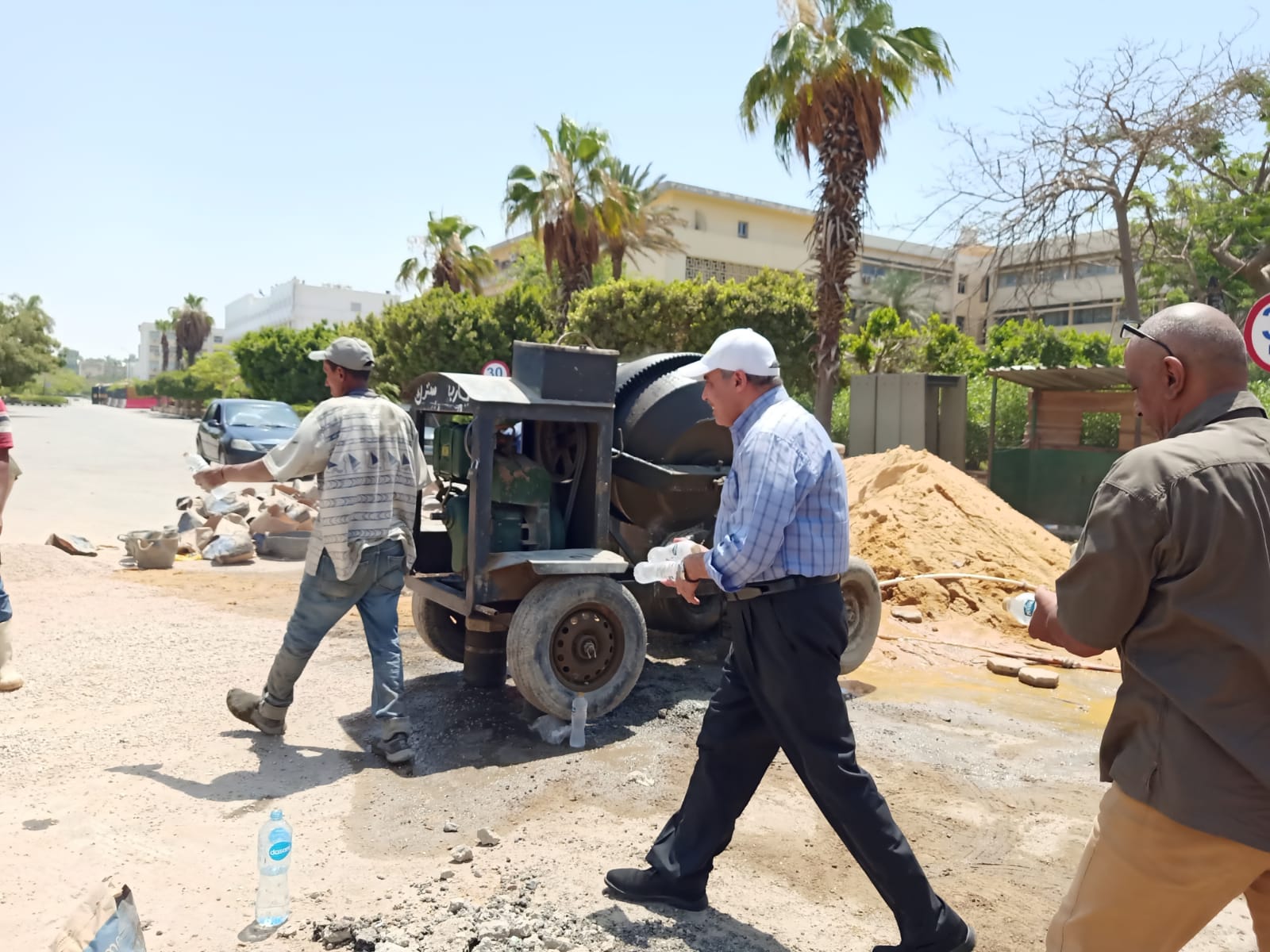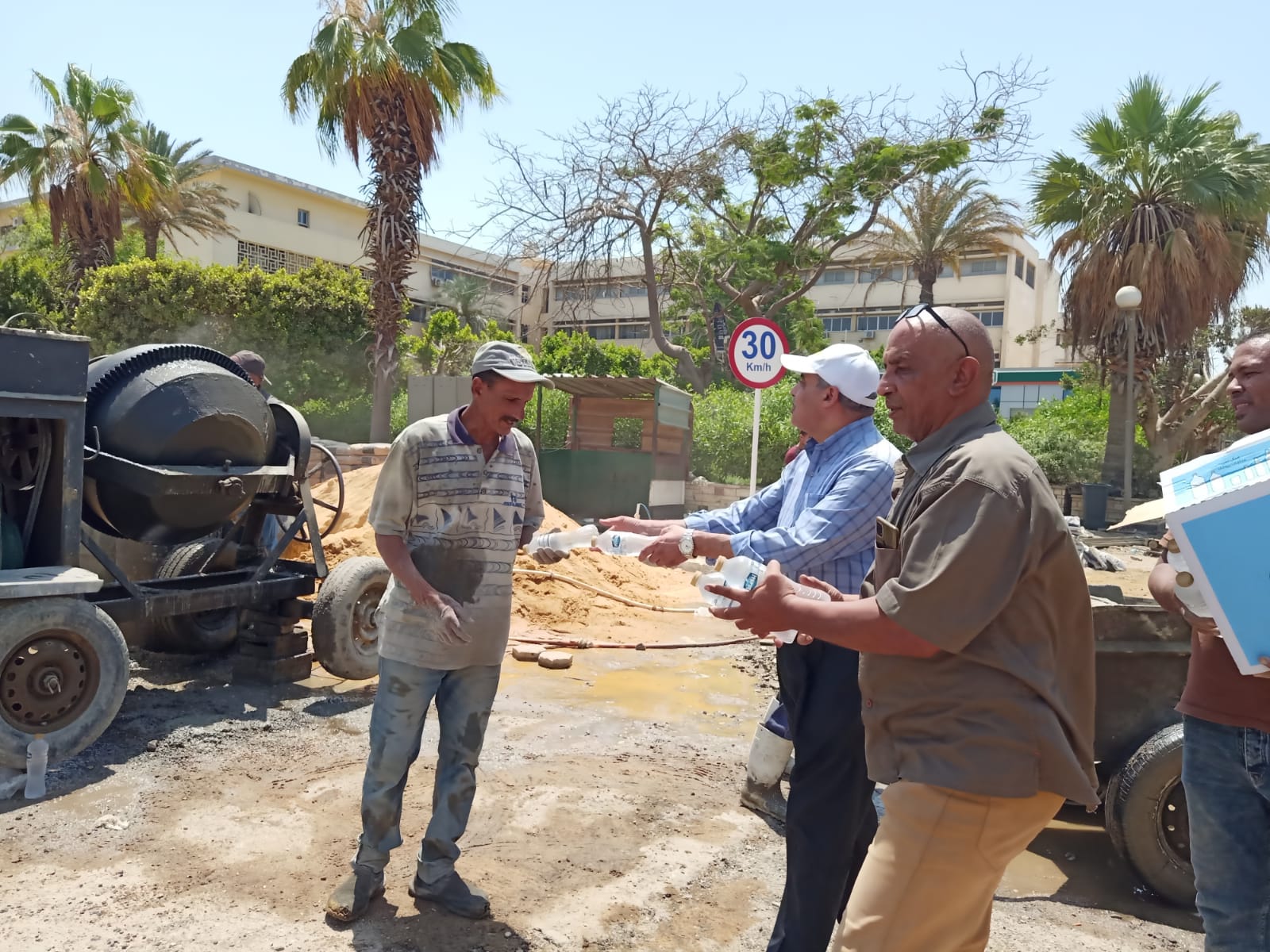 رئيس جامعة الأزهر يوزع الماء على العمال خلال تطوير بوابة كلية الطب | صور
