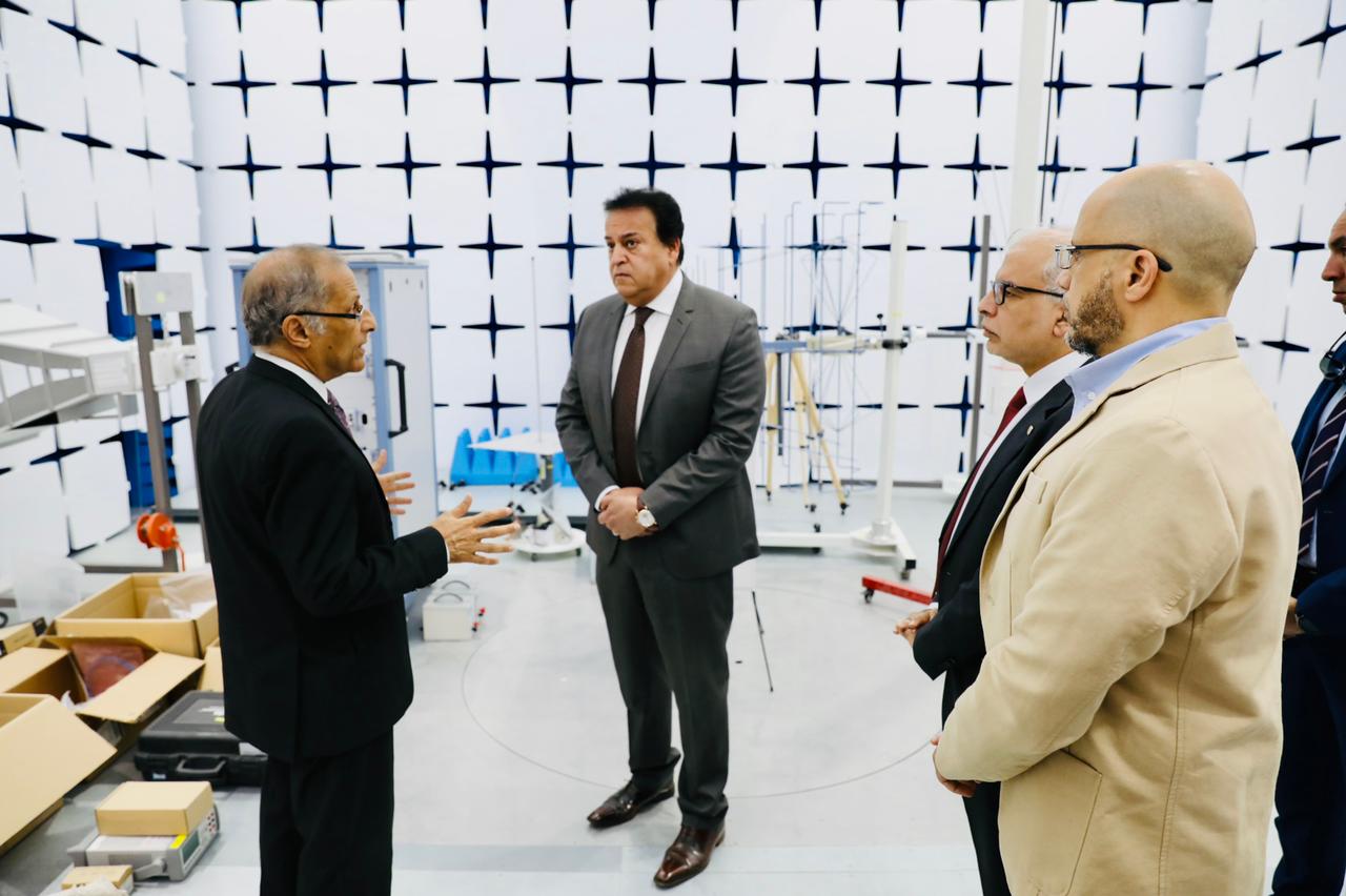 وخلال الجولة التفقدية، استمع الدكتور خالد عبد الغفار لشرح مفصل حول ما تم تنفيذه من أعمال الانتهاء والتجهيزات الخاصة بإنشاء مركز تجميع واختبار الأقمار الصناعية AIT كأول مركز متخصص في مجال تجميع واختبار الأقمار الصناعية في المنطقة العربية، والثاني من نوعه على المستوى الإقليمي.