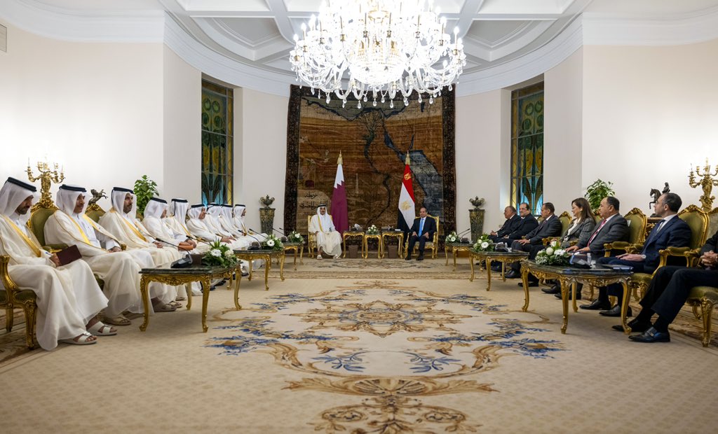 عقد الرئيس عبد الفتاح السيسي، جلسة مباحثات رسمية مع الشيخ تميم بن حمد، أمير دولة قطر، بقصر الاتحادية اليوم السبت، لبحث العلاقات الثنائية بين البلدين، وسبل تعزيزها بين الطرفين.