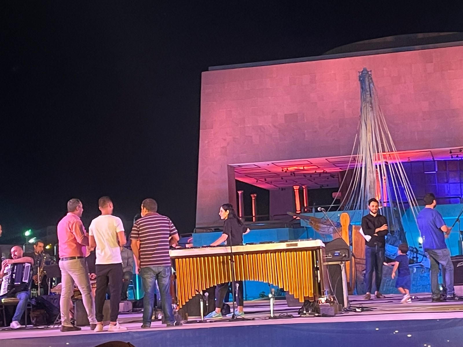 تواجدت نسمة عبد العزيز في وقت مبكر لإجراء بروفات نهائية على مسرح مهرجان السويس للموسيقى، والغناء قبل بدء الحفل.