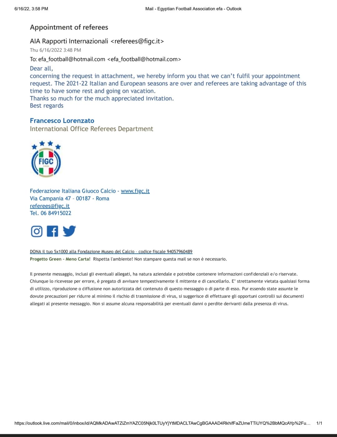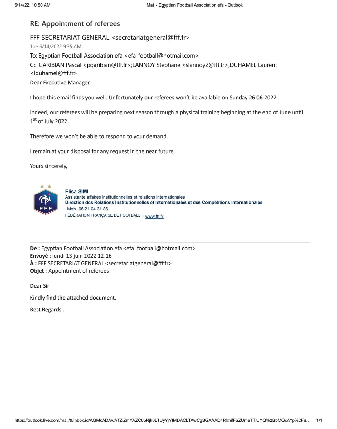 ونشر اتحاد الكرة خطابات اعتذارات لجان حكام الدوريات الكبرى عن المباراة، وأبرزها فرنسا وإسبانيا وإيطاليا.