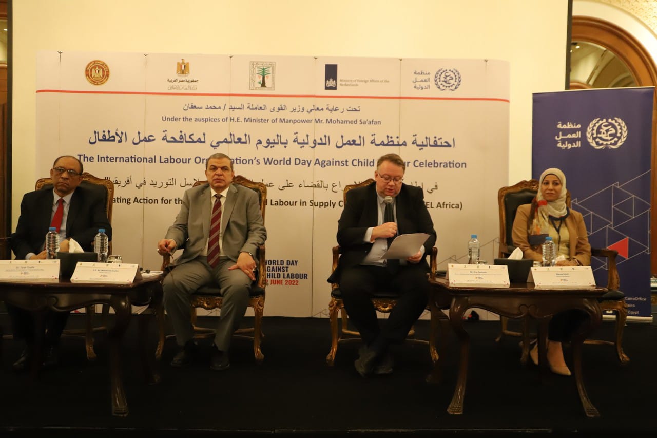 جاء ذلك خلال افتتاح الوزير احتفالية اليوم العالمي لمكافحة عمل الأطفال، في إطار مشروع الإسراع بالقضاء على عمل الأطفال في سلاسل التوريد في أفريقيا، والتي تنفذها منظمة العمل الدولية بمشاركة وزارتي القوى العاملة والتضامن والمجلس القومي للطفولة والأمومة وبحضور أعضاء اللجنة التوجيهية للخطة الوطنية لمكافحة أسوأ أشكال عمل الأطفال ودعم الأسرة 2018-2025.